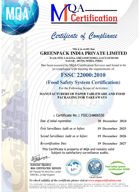 Certifications affirm GreenPack’s sustainable quality commitment.
